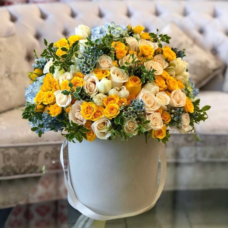 - Букеты в коробках и корзинах